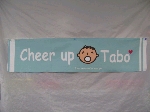 Tabo的毛巾設計:顏色幫忙選Tiffany藍 毛巾英文字為Cheer up 名字為 Tabo下方英文字為I was enchanted to meet you |
