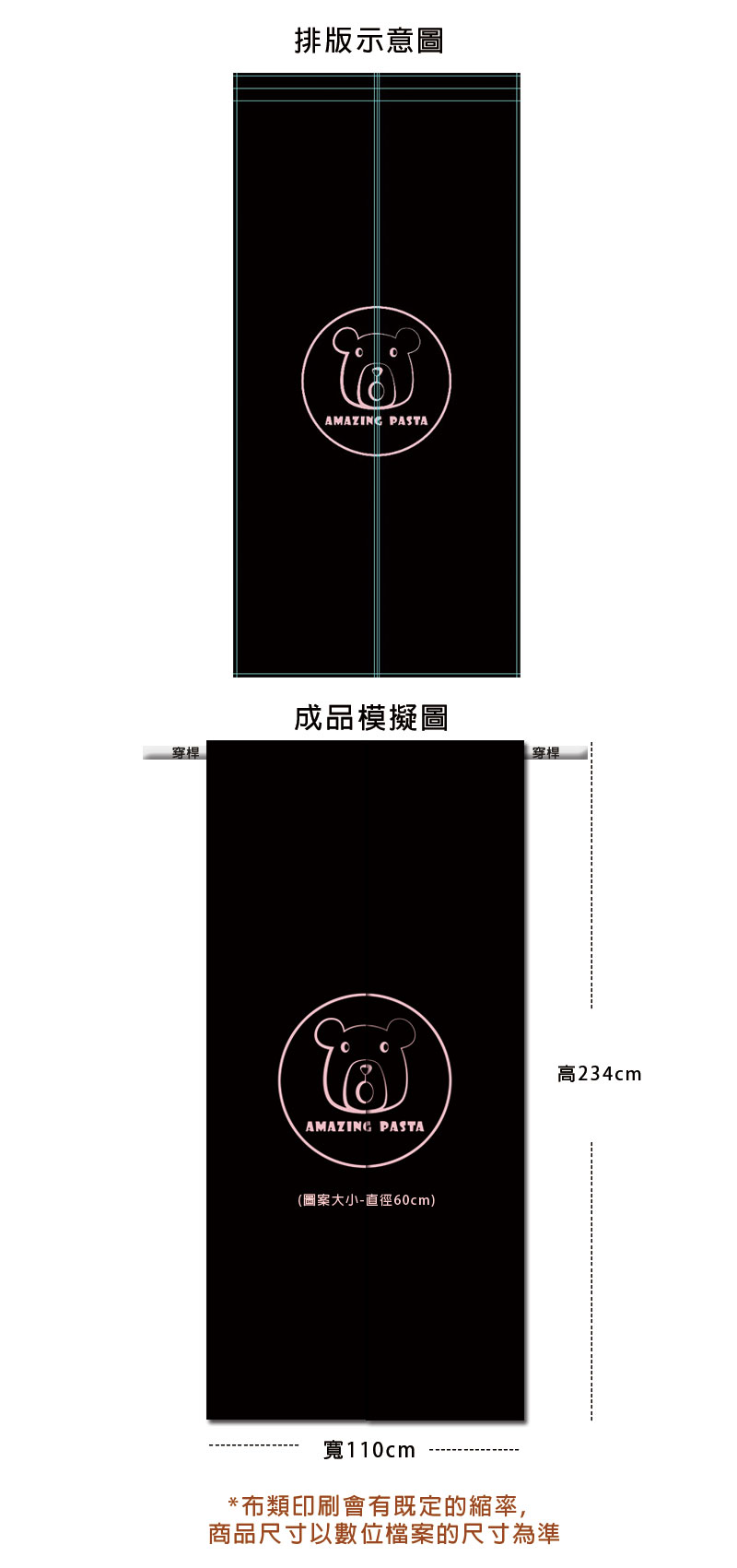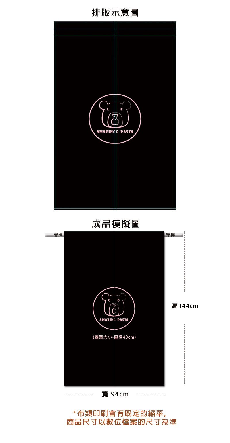 長144cm*寬94cm和長234cm*寬110cm的門簾,門簾全黑色,圖案粉紅色 |