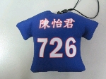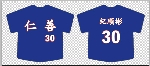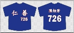 寶藍色 前面 校名仁善 字白色 背面 人名 加背號 各一件紀順彬30號 一件 726號 陳怡君 |